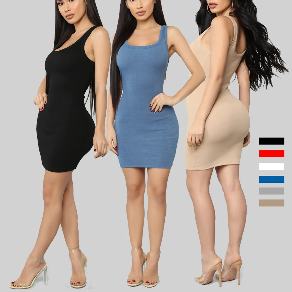 Latest Sleeveless Ribbed square Collar Bodycon Mini Casual Fashionable Womens Dresses